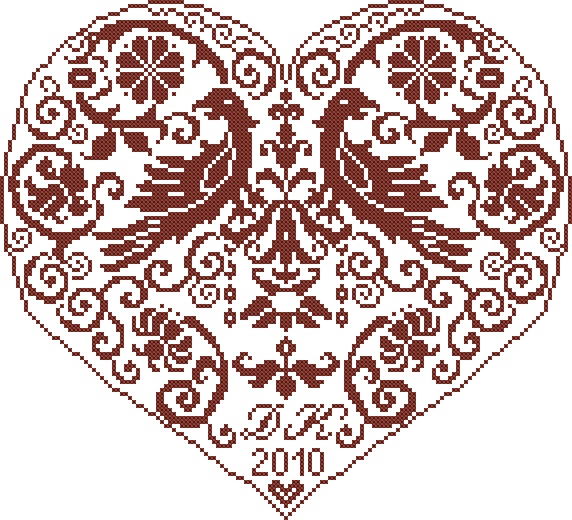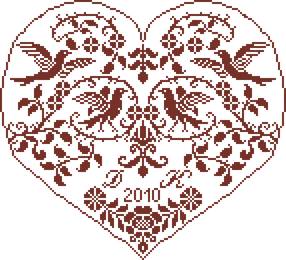 Heart with four birds